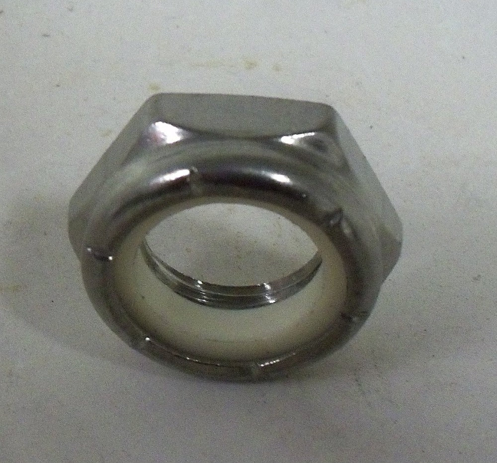 Some drive shaft couplings use a short, or "thin" Nylock nut to retain the coupling to the shaft, this is the Fine Thread nut, Stainless Steel. (This is a specialty nut not available at local stores)