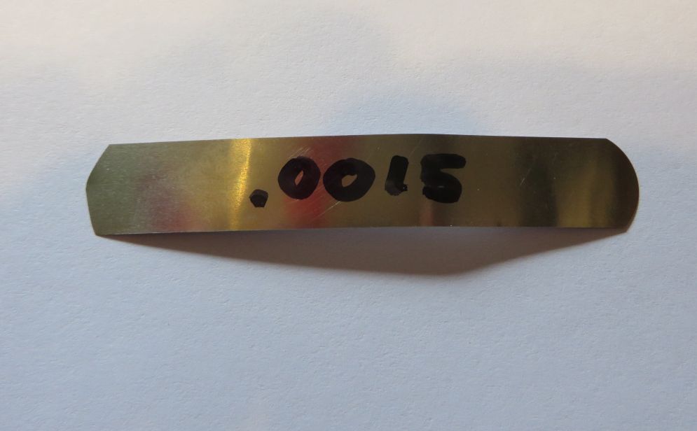 Feeler Gauge .0015" (Stainless Steel)  For checking shaft alignment between coupling halves. 3" long leaf
