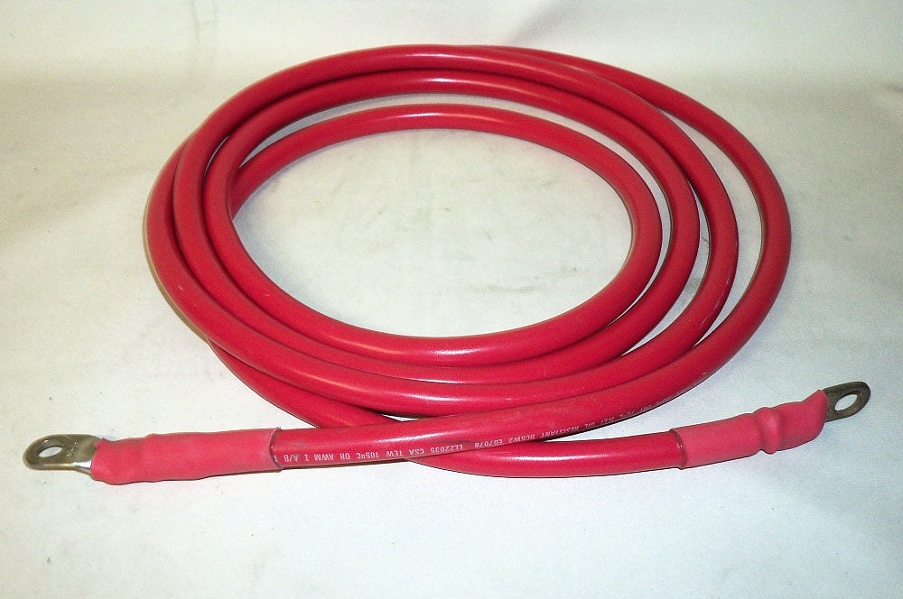Genuine  Marine #2 Battery cable, fine strand, Tin coated, custom made with Marine lugs hydralicaly crimped and slodered then protected with shrink tube.