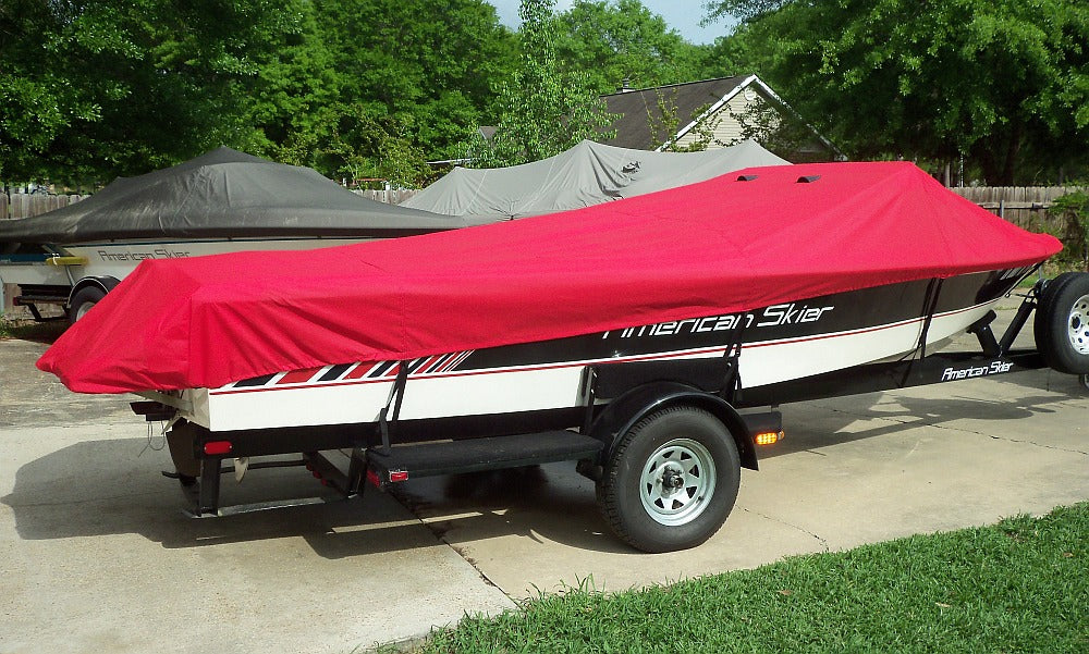 Custom Fit boat cover made by Westland Covers for TRD (American Skier Boats) This cover is designed for the ADVANCE Models 1985-1995, and LAZER models from 1996-2001. (Covers the swim platform)