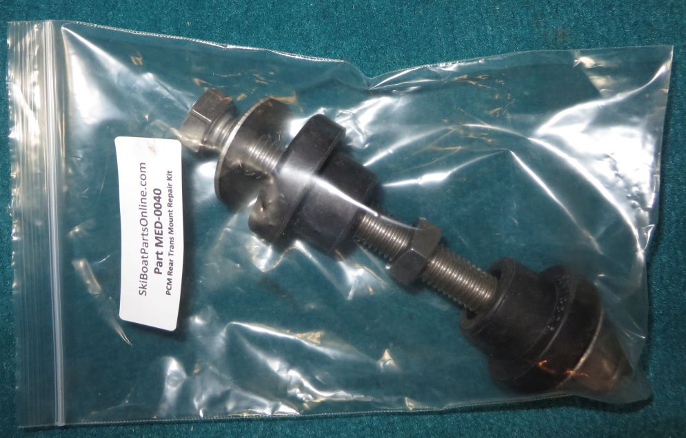 Repair kit for the common rear transmission mount in many of the PCM's, Indmars, Marine Power engine used in Ski Boat applications. If your vertical adjusting bolt is corroded, bushing shot, and /or seized up and will not adjust up/down, you will want to repair your mount (s) with this kit.