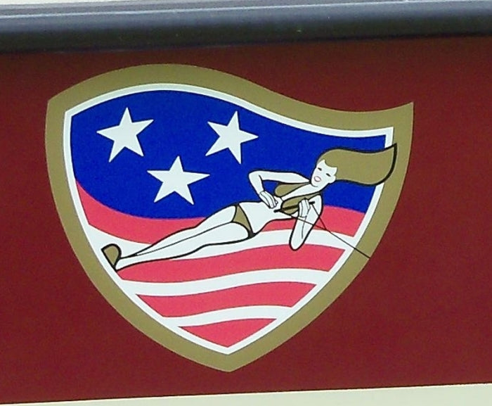 Aft Hull-side decal used on early American Skiers (1976-87) 4-color OEM graphic.  10.25" x 11.75"
