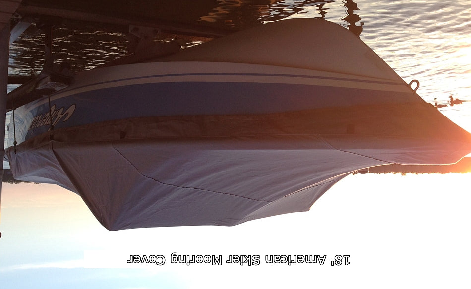 This is a standard, pattern-fitted custom cover for the American Skier 18' Model,  1976-84. This is a OEM quality Lt. Gray Polyester (Cotton Duck is now obsolete). The cover comes with a draw-string and Tie Down Strap kit, AND (1) support Pole.
