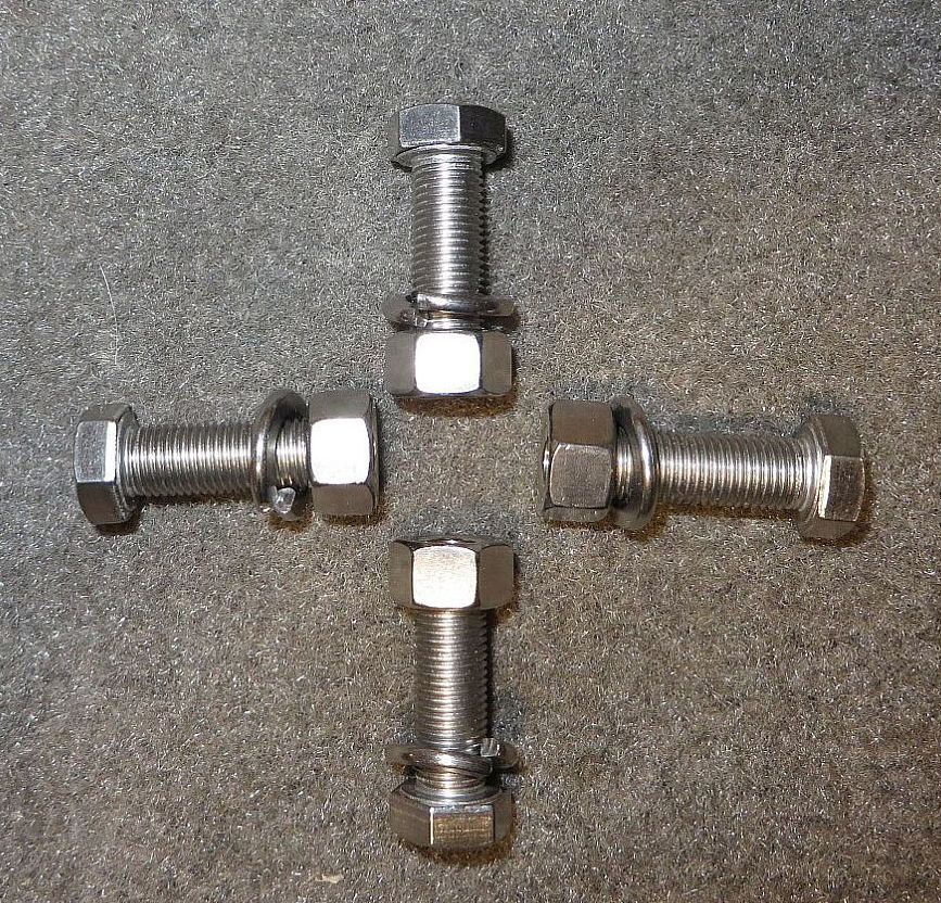 Stainless Steel 3/8" x 1. 25" long Fine Thread, with Stainless Lock Washer, and Stainless Fine Thread nut, (4) of each