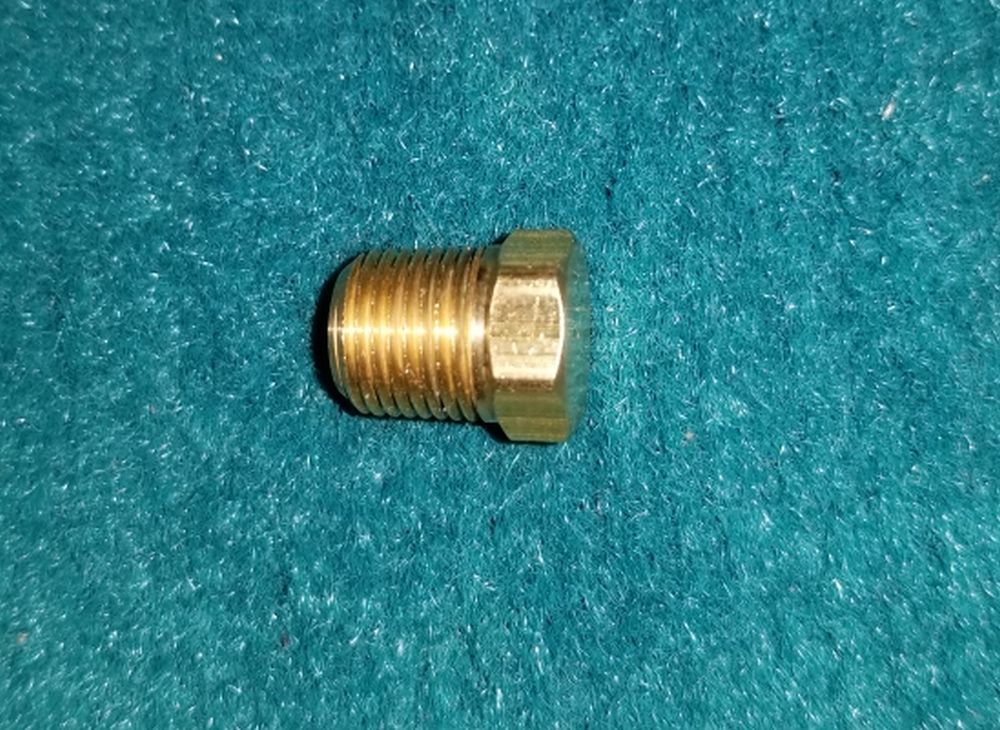 Exhaust manifold drain plugs - small 1/8" NPT Brass plugs with hex heads, typically (4) per engine    (Hex end uses a 7/16" wrench)